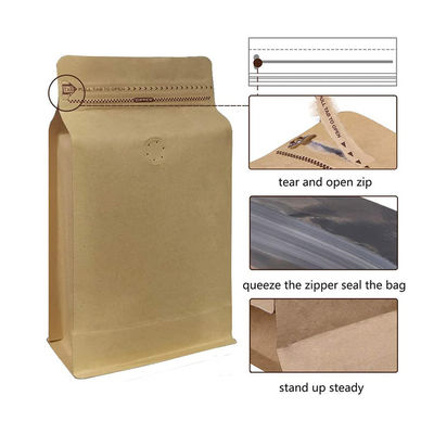 Premium jednokierunkowe odgazowanie płaskooddolne torebki papierowe brązowe 0,25 lb 0,5 lb 1 lb 2 lb 125 g 250 g 500 g 1 kg